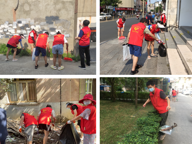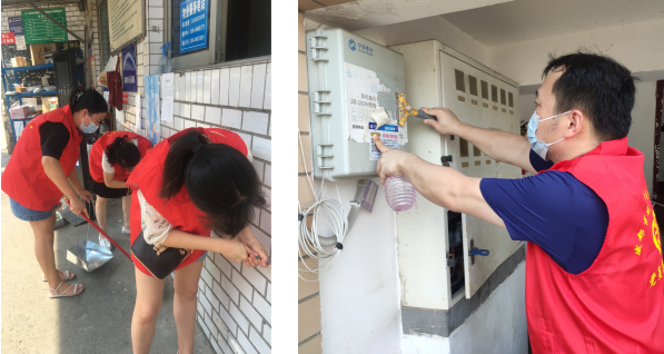(烈日下党员开展环境卫生清扫工作)