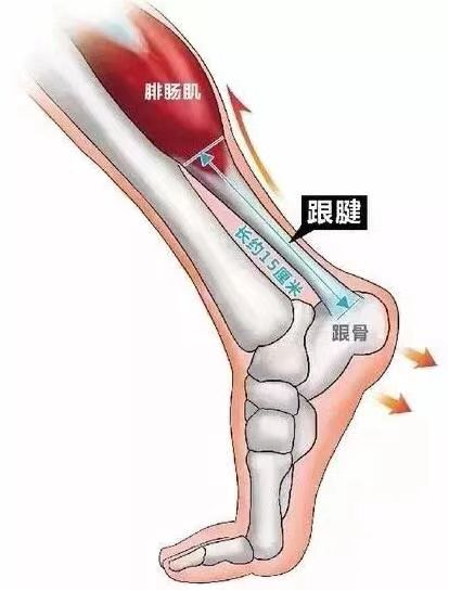 跟腱的主要功能是使小腿弯曲和使踝关节跖屈,是小腿肌肉力量传导至足部的最主要的解剖结构。直立、站稳、跑跳等动作在跟腱断裂后均不能完成。由于暴力等外力作用容易引起跟腱断裂。