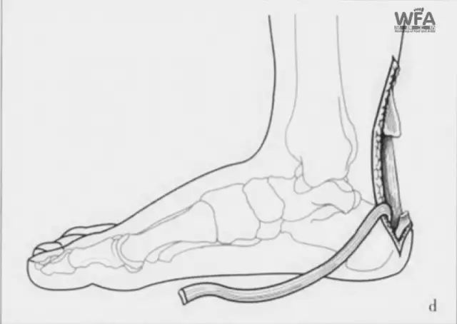本术式具有术后恢复快、肌腱固定强度高、并发症少的优势,不仅适用于慢性跟腱断裂缺损较大的患者,还适用于因慢性跟腱广泛病变,而需切除较大范围病变跟腱的患者,但不适用于对踇(拇)趾有较高要求的职业运动员和运动爱好者。
