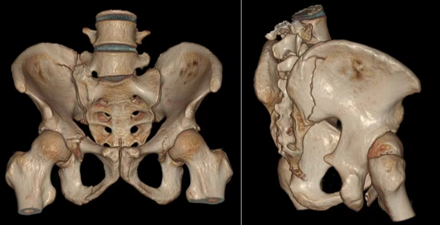 骨盆骨折指构成骨盆的两侧髂骨、耻骨、坐骨及前面的耻骨联合,后方骶骨发生的骨折。骨盆骨折出血量大(多在1000毫升以上)、止血难度大,加之易合并膀胱、输尿管等盆腔脏器损伤,因此是骨科中为数不多会引起病人急速死亡的创伤,一直是骨科治疗的重点和难点,骨盆手术被认为是创伤骨科手术中的“皇冠”手术。