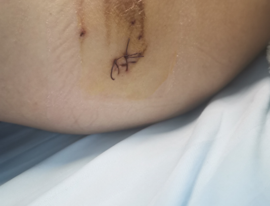 术中两处切口均不到3厘米,臀部切口仅1厘米,术中出血约50毫升,目前患者恢复良好。