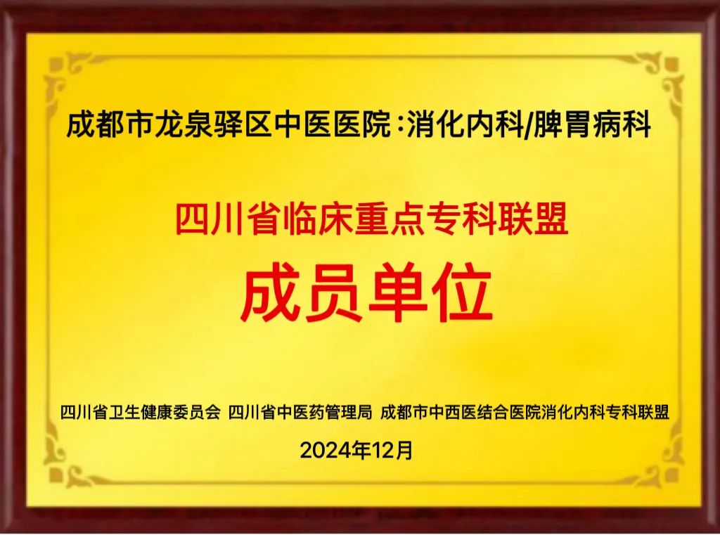 2020年成功获评龙泉驿区脾胃病重点专科;2024年底,更是成为四川省医学会龙泉驿区急性胰腺炎诊疗中心,标志着其在区域消化道疾病中西医结合诊疗领域的核心地位进一步巩固。
