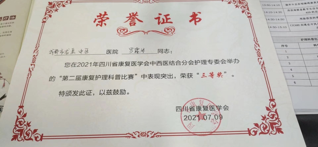 2021 年在成都市五区联盟医保医师擂台赛中斩获三等奖