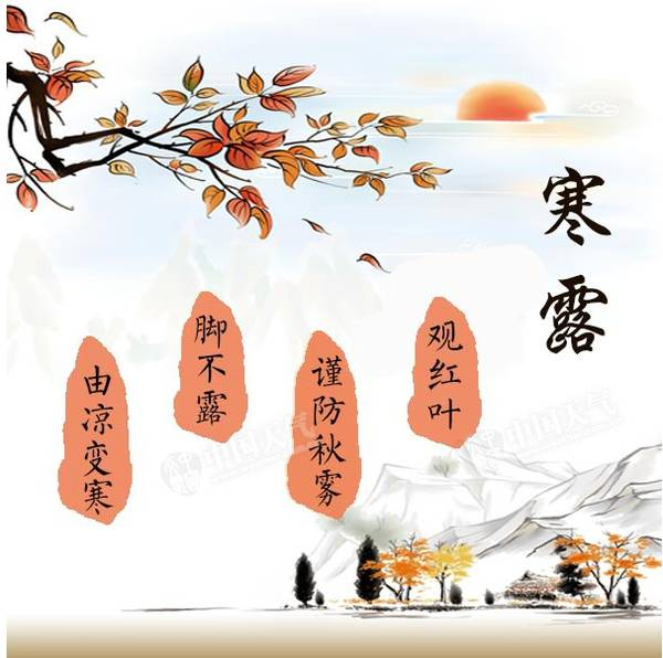 日暮水远楚云天,寒露总比白露寒。四季杨柳依依然,晨曦微霜宜穿棉。四方四汤浴双足,逼出寒气笑开颜。