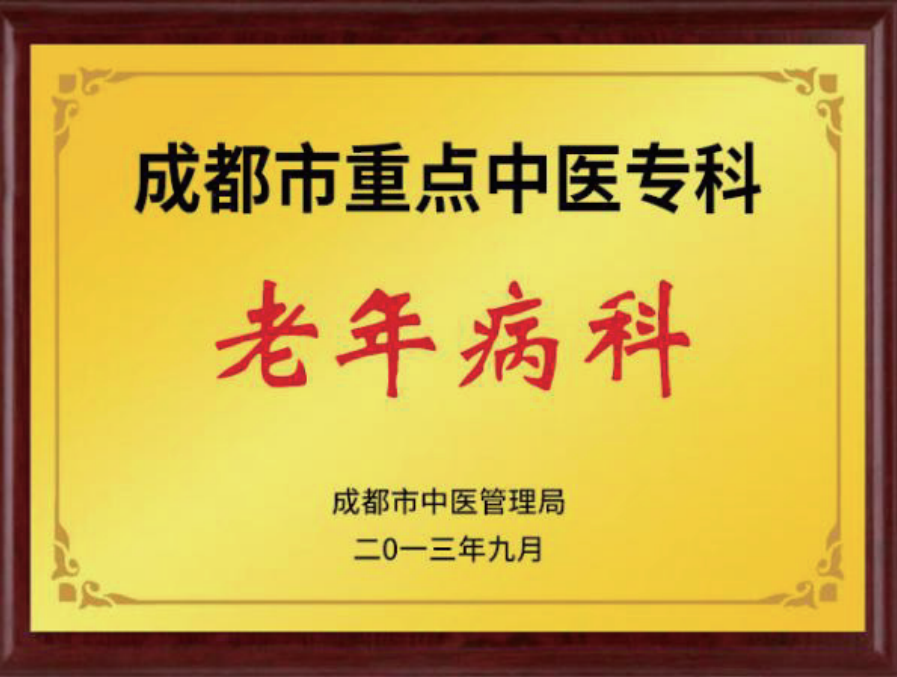 老年病科,从 2012 年 6 月 6 日成立并运行,2013 年 9 月通过评审正式成为成都市重点中医专科,2019 年被评为 四川省重点中医专科建设单位。 成都中医药大学附属医院医联体单位。老年病科设置专科门诊 1 个,综合治疗室 1 个, 病床 50 张。现有成都市名中医 1 名,主任中医师 2 名,副主任医师 1 名,主治医师 1 名,住院医师6人,其中研究生 5 名; 主管护师 5 人,护师 10 人,护士 1 人。科室成员先后到四川大学华西医院、四川省人民医院进修学习。