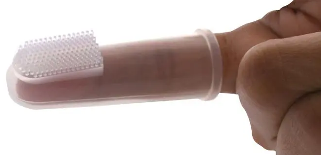 牙萌出后可继续用这种方法为孩子擦洗口腔和牙齿表面(图2)。当多颗牙齿萌出后,家长可用指套刷(图3)或小头儿童牙刷为孩子每天刷牙2次,并确保清洁上下颌所有的牙面,特别是接近牙龈缘的部位。美国牙医学会(American Dental Association,ADA)建议从孩子长牙的第一天起,就用儿童牙刷,加上米粒大小的儿童含氟牙膏给孩子刷牙。