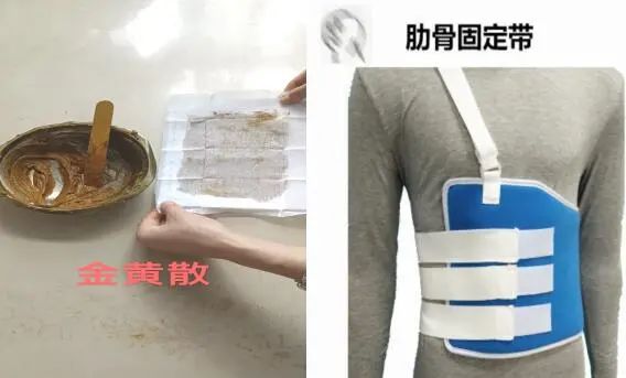 外敷:如意金黄散+肋骨外固定带。