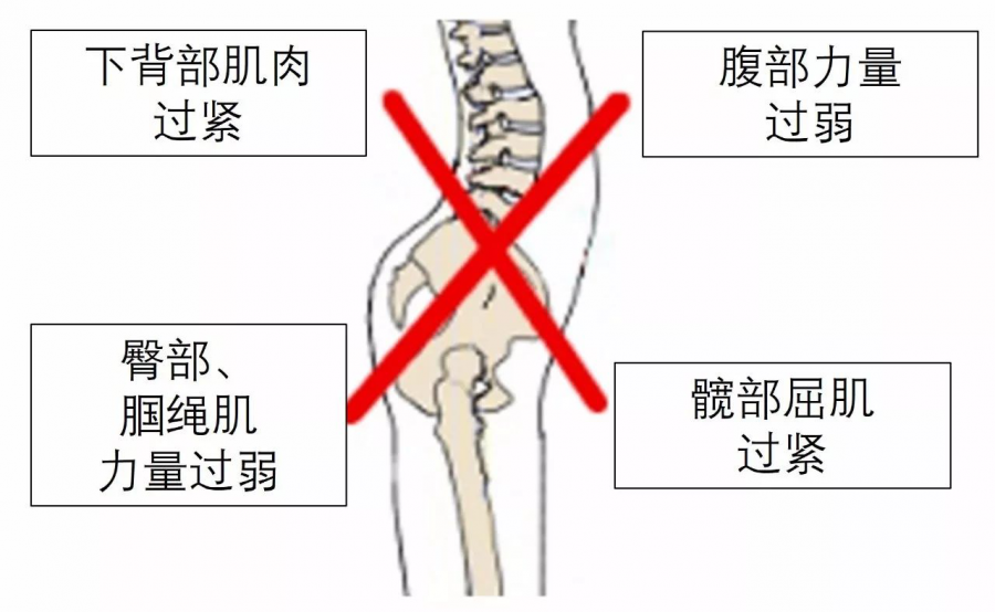1. 髋部屈肌过紧/僵硬(久坐是最主要原因);