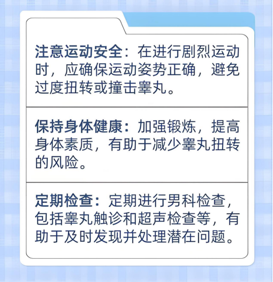 手法复位:在发病6小时内进行,通过手法复位使睾丸恢复原位,需要专业医生操作,时间越早成功率越高,如不能复位,需及时手术。手法复位后不能防止再次复发。