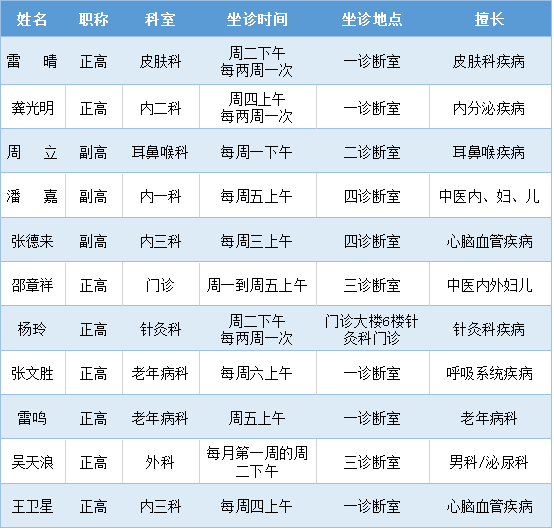 【名医有约】省级专家“触手可得”——名医馆专家坐诊时间表