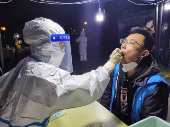 在医院紧急集合后赶到云立方社区时,已经有上百人在排队等待核酸检测,她顾不上吃午饭就立即投入了采样工作,直到16:30才结束采样。但她的工作还远未结束,19时,接到命令的她又立即赶往另一社区进行采样工作,直到深夜才采样结束,疲惫的她还没来得及休息,凌晨1点又接到了紧急集合采样的电话,她回头看了眼熟睡的孩子,轻轻地掩上门,便再次奔赴新的战场。