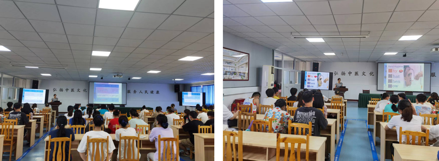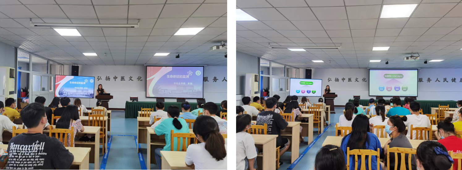 护士长曾桂群就手卫生、医废管理和职业暴露等内容进行详细的讲解。总带教小组组长黄娟就生命体征的评估与护理相关内容进行讲解。旨在让学生建立良好的行为规范、自我防护和患者安全保护的职业意识,为后期进一步学习奠定基础。