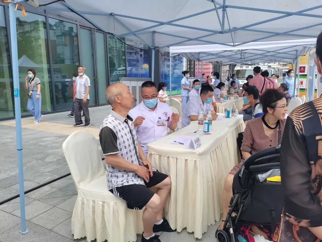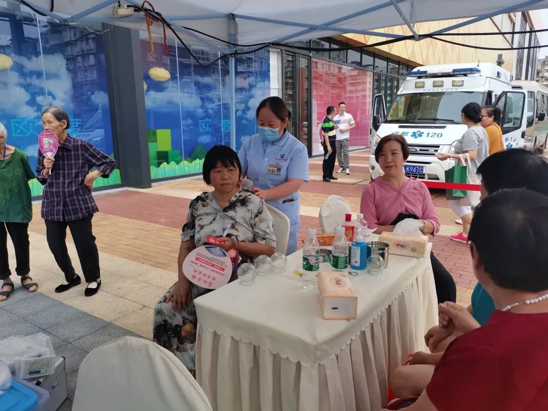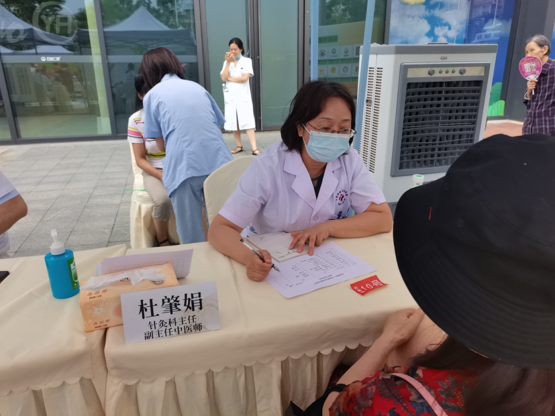 活动主会场,我院派出七名市级、区级名中医,近三十余名医务志愿者,为现场群众进一步宣传普及《中华人民共和国中医药法》,提供义诊咨询、推拿、按摩、刮痧、火罐等中医药服务,让老百姓与名中医面对面,在家门口享受优质医疗服务。