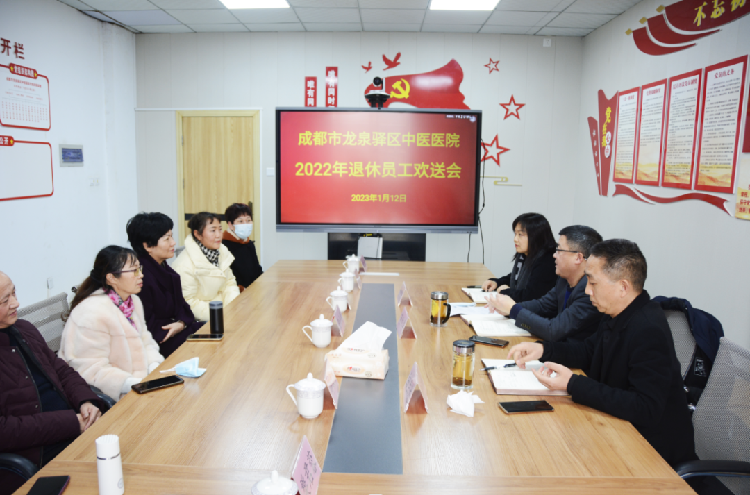 2023年1月12日,成都市龙泉驿区中医医院为2022年退休同志举行隆重的退休仪式。医院党委书记、纪委书记、院长等领导班子成员出席欢送会。党委书记苟立华同志致辞,组织人事部和相关部门同志参会。