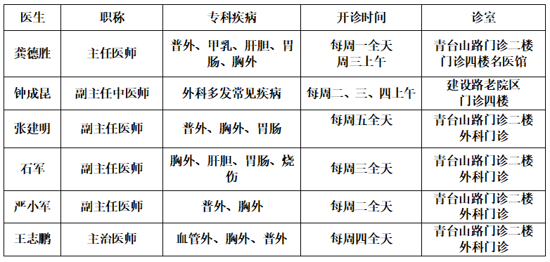 5.血管外科:常规开展大隐静脉曲张超声引导下小切口大隐静脉高位结扎+点式剥脱术,静脉曲张射频消融术,静脉曲张泡沫硬化剂注射术,下腔静脉滤网植入和取出术,肢体动脉栓塞切开取出术,深静脉血栓置管溶栓术,各种原因导致的血管损伤,髂静脉压迫球囊扩张加支架植入术等。