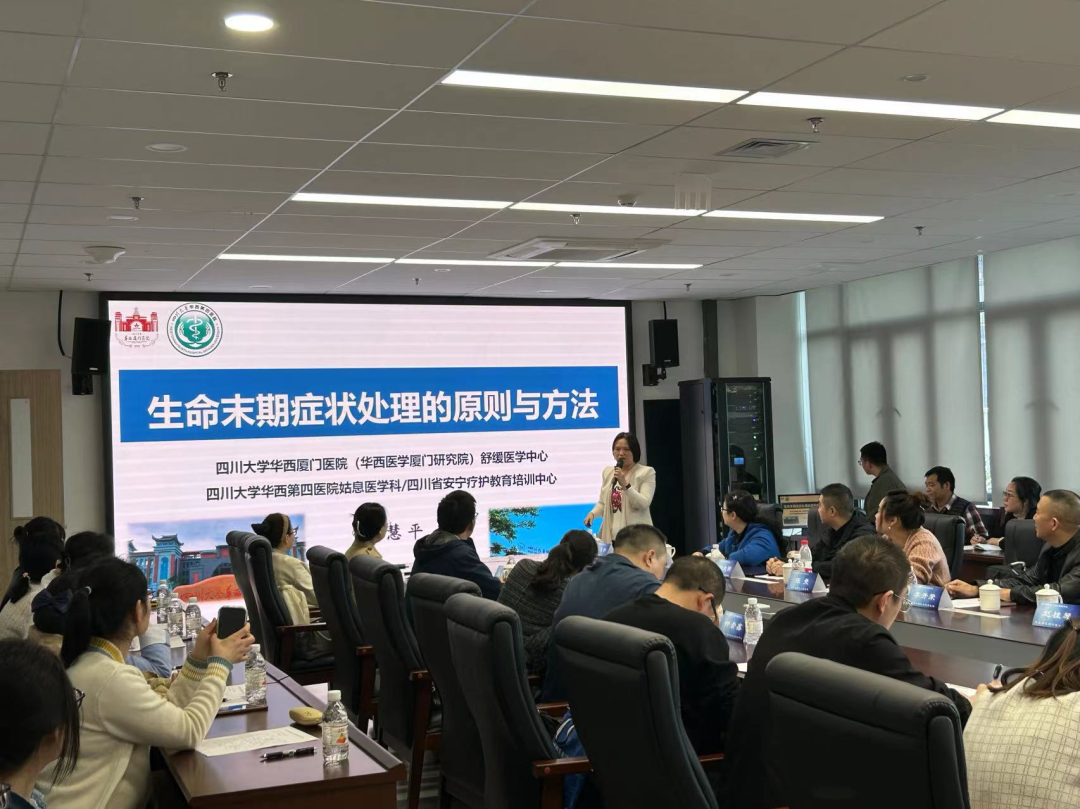 四川大学华西第四医院姑息医学科陈慧平教授,成都市第八人民医院安宁疗护、肿瘤科舒静教授,区安宁疗护质控中心成员及医院相关科室共计60余人参加。