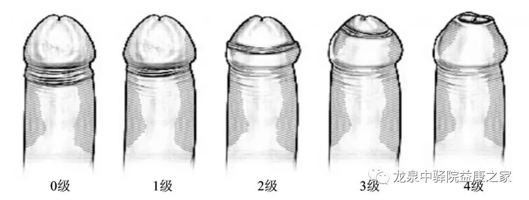 0级:可完全自如伸缩,包皮完全显露在龟头下方且无狭窄环,或容易外翻;
