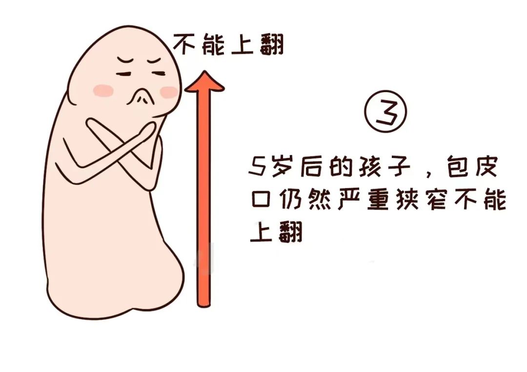 若包皮口发育延缓或不发育,少数病例原来可以上翻,后因包皮或龟头反复发炎,致使包皮肥厚,包皮口缩窄,或发生包皮龟头粘连,以致包皮不能上翻,称之为继发性包茎,必须手术!