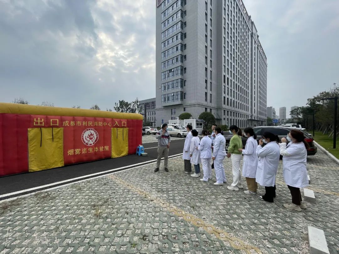 演练以灭火实操为主、穿插进行烟雾模拟舱逃生体验。全院医务人员、第三方公司外包人员共计1000余人参加,使用灭火器400余具。