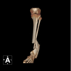 ▲术前CT提示左侧胫腓骨粉碎性骨折,断端移位明显