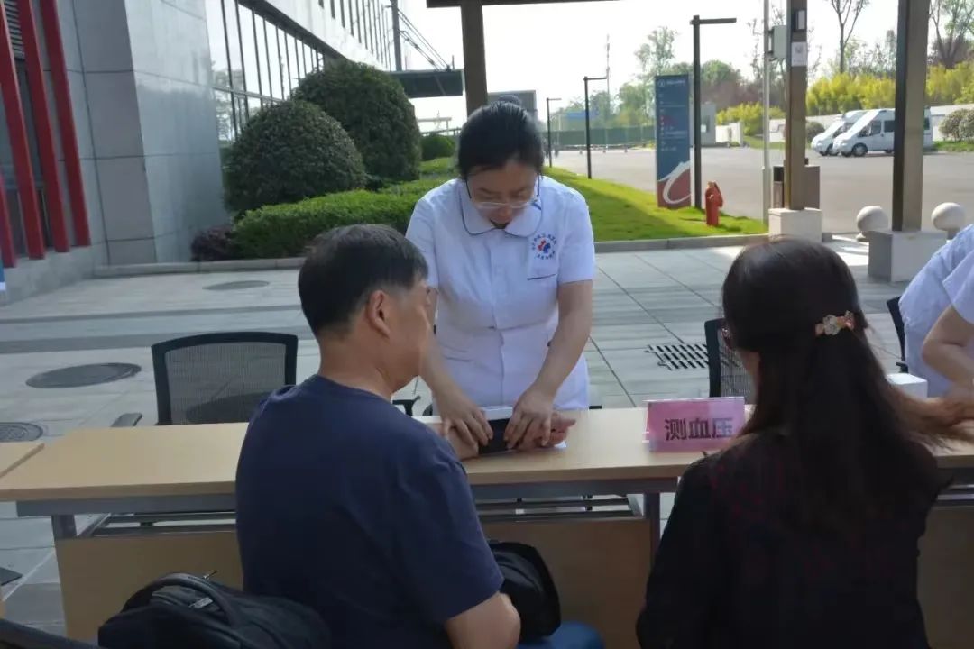为弘扬南丁格尔精神,护佑人民生命健康,5月9日,我院在门诊广场组织开展了“科普促健康,携手向未来——第113个5.12国际护士节中医药义诊及科普活动”。中医药医疗、护理专家以及康复科、治未病中心团队共计30余人参加此次义诊和科普活动,服务市民及患者等共计100余人。活动现场,护理人员为居民群众测量血压、血糖,发放健康宣传手册和中医药文创纪念品,得到了现场市民的一致好评。