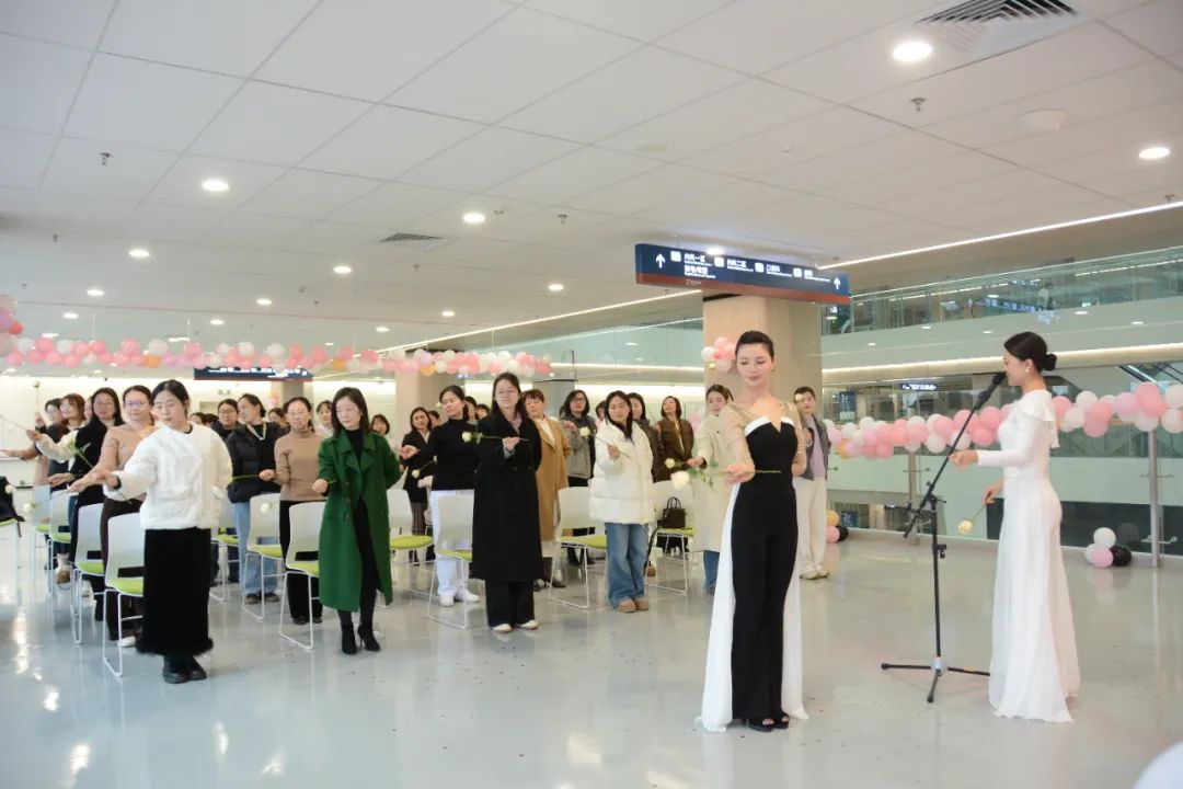 在热烈的掌声中,两位高级形体礼仪培训导师款款而来,她们凭借丰富的经验和专业的素养,引导女职工们从笑容塑造,到女性如何优雅地坐、立、走进行了细致的讲解与示范。大家认真跟随老师的指令在音乐声中跟着练习,慢慢地找到感觉,一颦一笑尽显芳华,一步一移皆是优雅,在反复练习的过程中她们也遇见了更美的自己。
