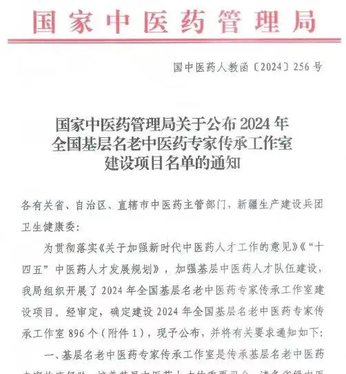 [ 2024全国基层名老中医专家传承工作室建设 ]