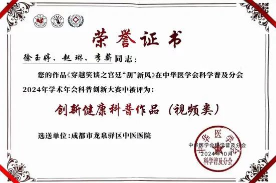 大力提升科研教学工作。仅2024年,医院成功立项中医制剂联合科研基金项目2项,发表SCI论文3篇,立项省级课题6项、市级3项,举办省级继教6项、市级13项;接收培训成都中医药大学等见习学生200余人;获得中华医学会科学普及分会创新健康科普作品奖、2024年成德眉资中医经典竞赛3项个人一等奖、2024年龙泉驿区第二届职工工间操比赛冠军、成都市第二届“杏林之光”中医药服务内涵建设创新案例大赛两项铜奖等众多奖项。