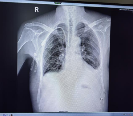 综合考虑胡先生的具体情况,并与家属充分沟通后,肾病科团队决定解决为肾透析的血管通路问题,采用超声引导下穿刺颈静脉联合DSA技术引导,在右侧颈内静脉置入带隧道带涤纶套的中心静脉透析导管置管术。