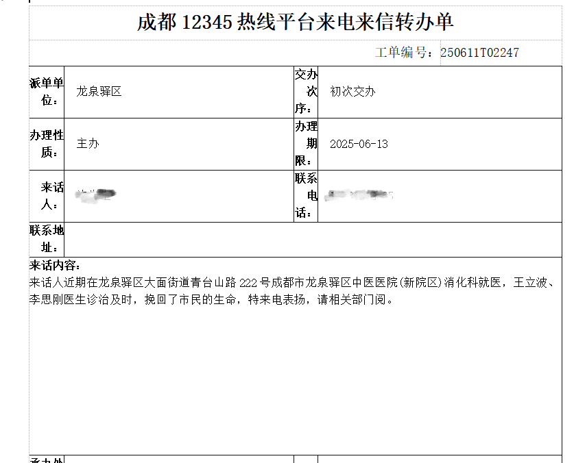 6月13日,刚刚康复出院的许先生,为了感谢消化内科及介入中心,特向成都12345热线平台发去感谢信,感谢救命之恩。