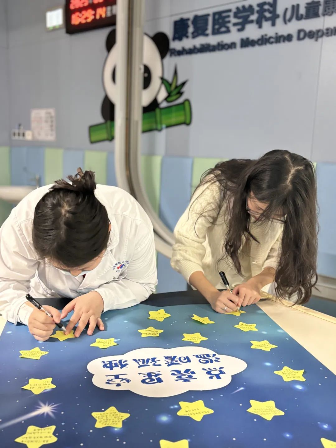 团员青年在特制的星星卡片上,写下对孤独症孩子们的祝福与寄语。