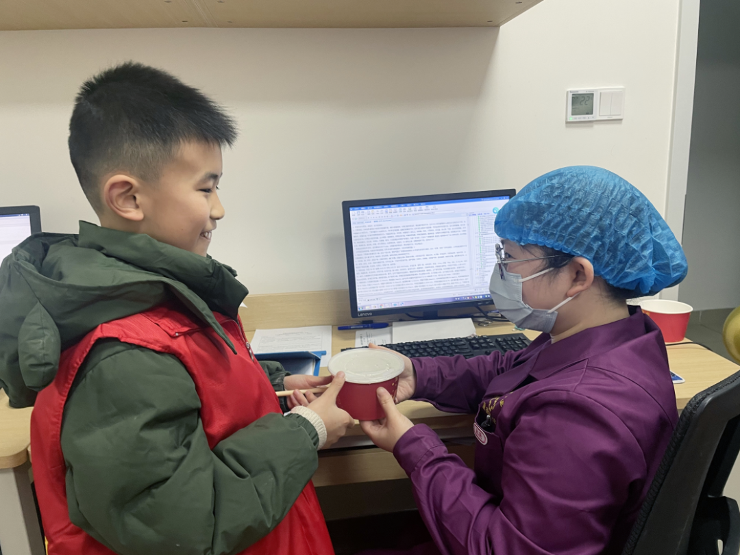 当小小志愿者们将一碗碗充满“家”味的汤圆送到医护人员及值班的父母手中时,大家脸上都洋溢着幸福的笑容。