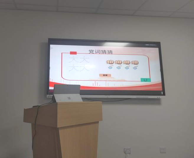 第三部分为党史知识竞赛。竞赛内容丰富有趣,既有全员都可以参与的听歌识曲、抢答题环节,也有团队协作的看图猜党词环节。通过以赛促学、以赛促用,充分调动党员们学习的积极性、主动性和自觉性。