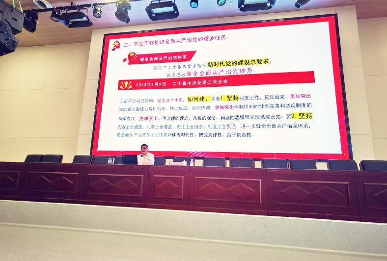 医院党委书记苟立华同志结合党的二十大报告,从全面从严治党的重要性、严峻性和紧迫性深刻阐述了“全面从严治党永远在路上”的重大意义,为全体党员干部们讲了一堂严肃而有意义的廉政专题党课。要求全体党员干部严格履行全面从严治党政治责任,进一步强化廉洁意识,严守纪律底线,自觉做到敬畏党纪、敬畏国法、敬畏权力,做到心中有廉,心中有法,心中有畏,做一个“忠诚、干净、担当”的新时代、龙中医有为干部。