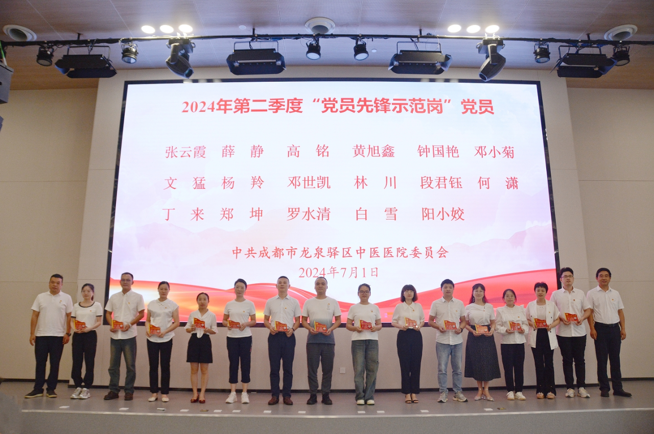 大会宣布了医院获得“2024年卫健系统优秀共产党员、优秀党务工作者、先进基层党组织”、“2024年龙泉驿区优秀共产党”、2024年第二季度“流动红旗党支部”、“党员先锋示范岗”名单。对荣获“流动红旗党支部”的门诊第一党支部、内科第一党支部以及荣获“党员先锋示范岗”称号的张云霞等17名党员进行授旗、授牌,为全院党员干部职工树立了学习标杆,激励全员向先进看齐。