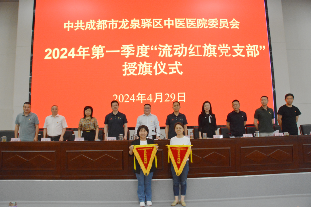 会议为获得2024年第一季度“流动红旗党支部”的外科第二党支部和内科第二党支部进行了授旗,为李洁等10名“党员先锋示范岗”代表进行了授牌。党委书记苟立华同志提出要求,希望全体党员干部在今后的工作和学习中时刻保持初心、践行使命,以看齐标杆的决心、勇争先锋的姿态,为医院发展作出更大贡献。